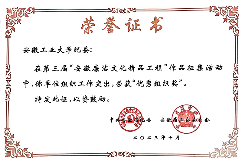 廉洁文化精品工程”作品展,共征集852件作品,择优推荐6件作品参加第三届“安徽省廉洁文化精品工程”征集活动。师生以“廉洁自律”为主题,深入挖掘身边的廉洁元素,通过平面设计、视频、书法等多种形式,以极具生命力的艺术语言诠释对“清廉”的理解,营造崇廉拒腐的校园风尚。